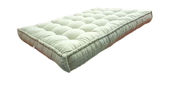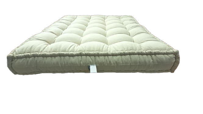Fabricació artesanal: Elaborat completament a mà amb costures vistes d'estil francès. Materials naturals: Llana pura, transpirable i ecològica. Disseny elegant: Amb ribet a l'anglesa i detalls amb pom-pons per un acabat únic. Si busques un matalàs ecològic, transpirable i confortable, aquest és la millor opció per un descans natural i saludable.